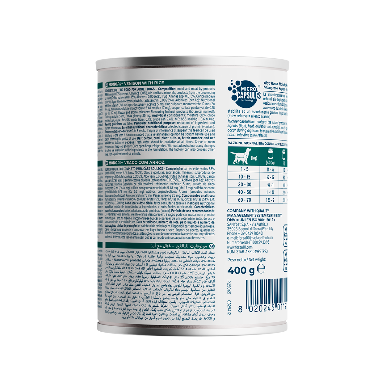 Caratteristiche nutrizionali essenziali: fonti selezionate di proteine (cervo).