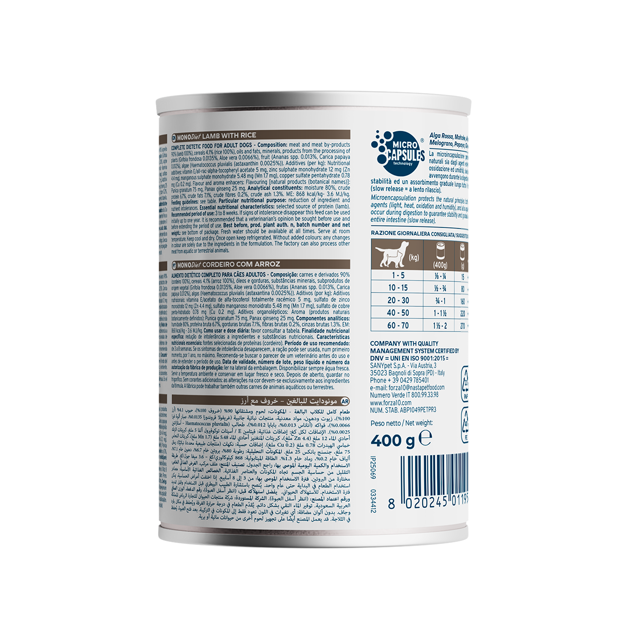 Caratteristiche nutrizionali essenziali: fonti selezionate di proteine (agnello).