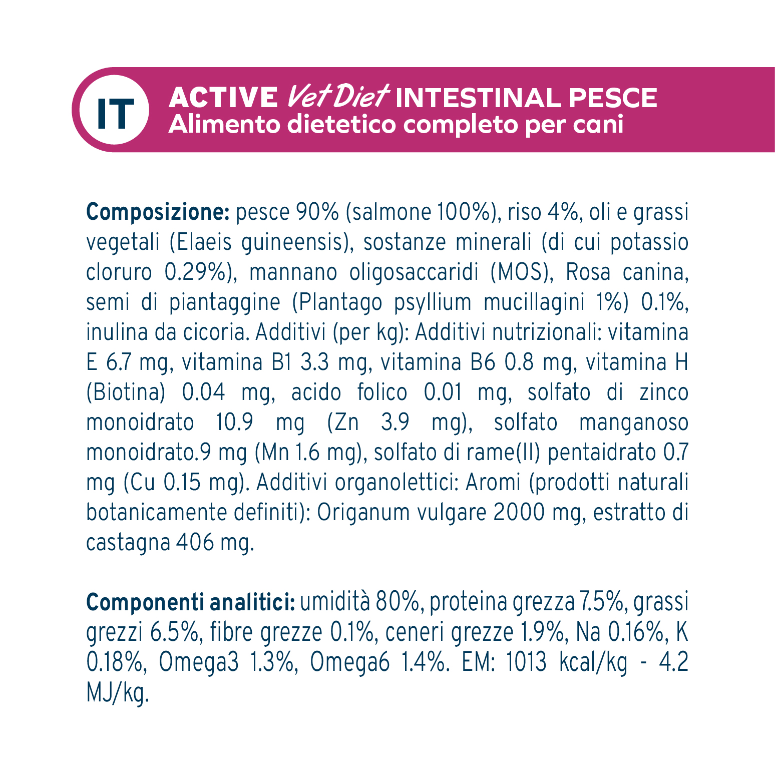 Monoprotein: formulato con unica fonte alternativa di proteine animali: proteina di pesce ad elevato valore biologico e con alta biodisponibilità.