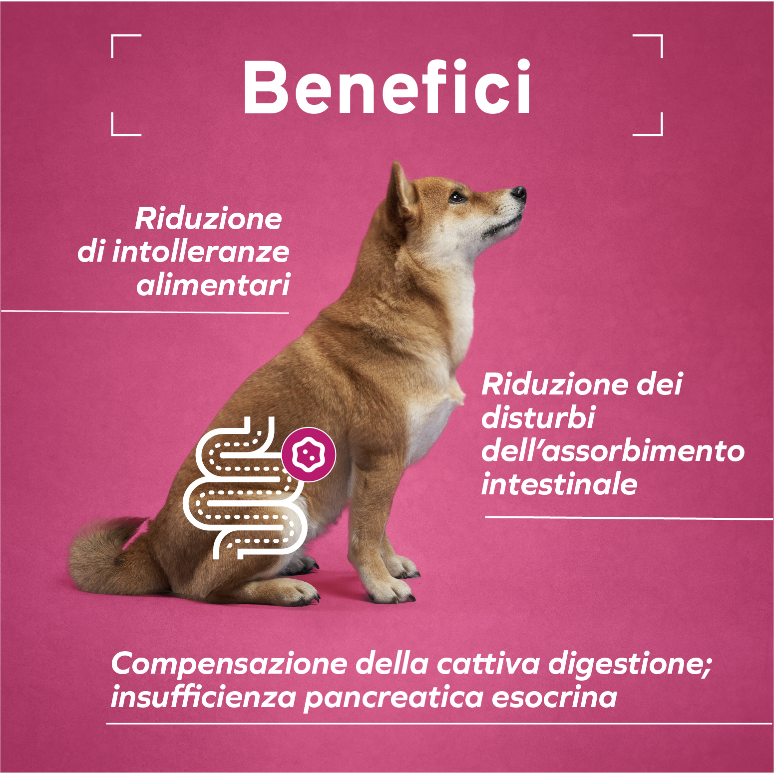Particolare fine nutrizionale: a) riduzione dei disturbi dell’assorbimento intestinale b) compensazione della cattiva digestione; insufficienza pancreatica esocrina c) riduzione di intolleranze a ingredienti e sostanze nutritive.