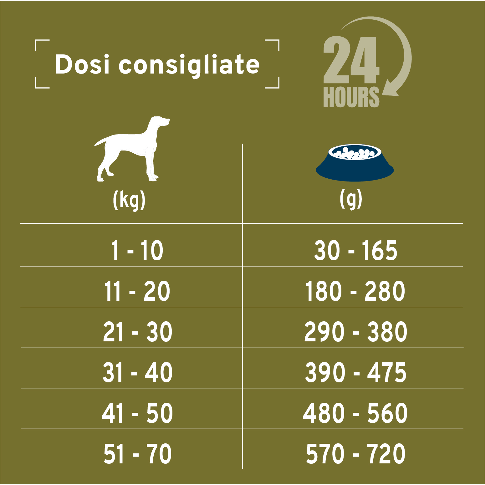 Periodo d’impiego raccomandato: da 3 a 8 settimane. Se i sintomi di intolleranza scompaiono, l'alimento può essere usato inizialmente fino ad 1 anno. Si raccomanda di chiedere il parere di un medico veterinario prima dell'uso e prima di estendere il periodo d'impiego.