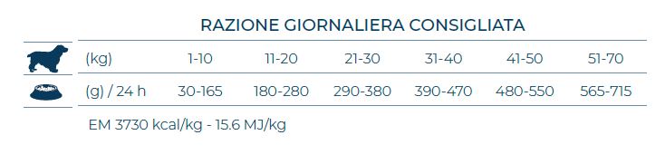 Caratteristiche nutrizionali essenziali: utilizzo di fonti selezionate di proteine e carboidrati (pesce di mare e riso ad elevato valore biologico).