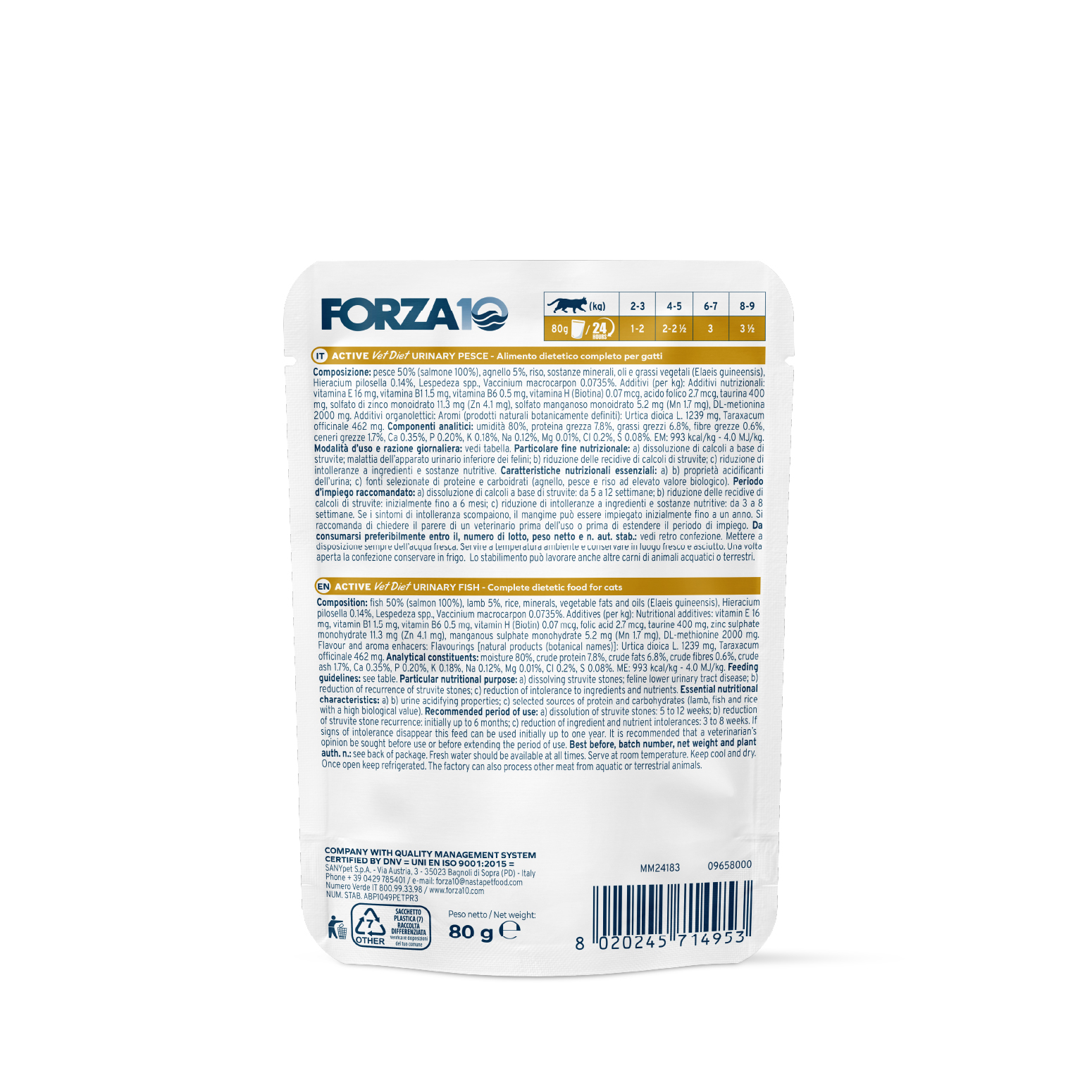 | Kg | pouch (80g) |